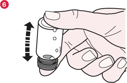 7. Rull hetteglasset forsiktig mellom hendene for å løse opp Promixin i væsken (se figur 7). Ikke rist hetteglasset for kraftig fordi da kan oppløsningen begynne å skumme.