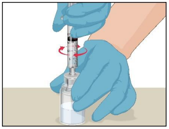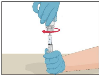 1. Sett infusjonsnålen på en sprøyte som inneholder Prothromplex-oppløsningen. Et infusjonssett med vinger (butterfly) anbefales. Rett nålen oppover, og fjern eventuelle luftbobler ved å banke lett på sprøyten med fingeren og skyve luften langsomt og forsiktig ut av sprøyten og nålen.