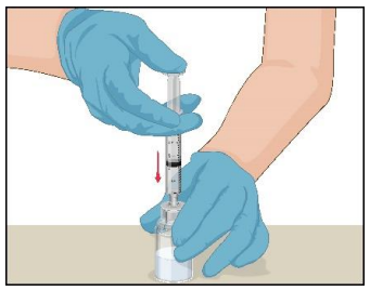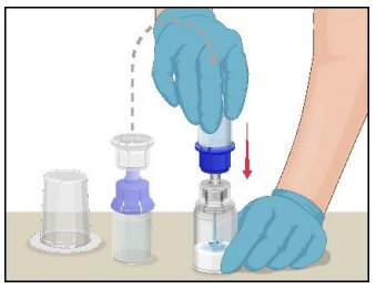 Den klargjorte oppløsningen i sprøyten skal kontrolleres for partikler og misfarging før administrering (løsningen skal være klar, fargeløs og uten partikler). Filteret i Mix2Vial-enheten fjerner disse partiklene helt. Filtreringen påvirker ikke doseberegningene. Oppløsningen i sprøyten skal ikke brukes hvis den er uklar eller inneholder flak eller partikler etter filtrering.