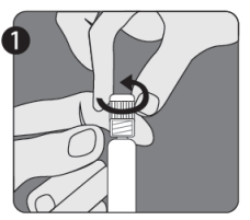 Trinn 1: Vri for å fjerne lokket (H) fra én av de to identiske nålene. Dette vil være nålen som brukes til rekonstituering. Ikke fjern plastdekselet (G).