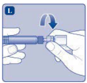 Dersom du trenger mer enn ett hetteglass for at du skal få full dose, gjenta trinn A til J med ytterligere hetteglass, hetteglassadaptere og ferdigfylte sprøyter inntil du har oppnådd din nødvendige dose.