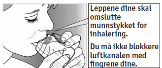 Du må ikke puste ut gjennom inhalatoren.