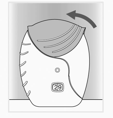 Skyv beskyttelseslokket oppover så langt det går for å beskytte munnstykket.