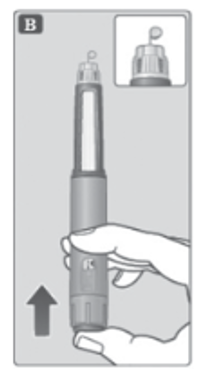 Ikke sett en ny nål på pennen før du er klar til å ta injeksjonen.