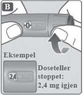 Vri dosevelgeren til dosetelleren viser din dose (0,6 mg, 1,2 mg, 1,8 mg, 2,4 mg eller 3,0 mg).