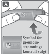 Dersom pennen allerede er tatt i bruk, skal du gå til trinn 3 «Velge dose». Kontroller kun gjennomstrømningen før din første injeksjon med enhver ny penn.