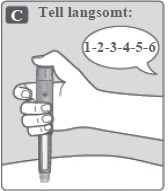 Forsikre deg om at du kan se dosetelleren. Ikke dekk den med fingrene. Dette kan avbryte injeksjonen.