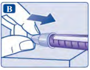 Nålen er dekket av to hetter. Du må fjerne begge hettene. Dersom du glemmer å fjerne begge hettene, vil du ikke få injisert noe oppløsning.