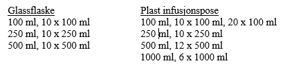 Ikke alle pakningsstørrelser vil nødvendigvis bli markedsført.