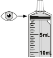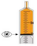 Snu flasken forsiktig opp ned og trekk i stempelet for å måle opp dosen din. Med tuppen vendt opp må toppen av den svarte gummiproppen være på linje med den forskrevne dosen.