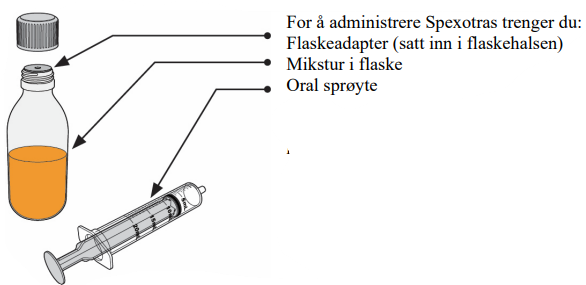 Sjekk at det ikke er mer Spexotras igjen i den orale sprøyten. Hvis det er mikstur til overs i den orale sprøyten, skal dette gis.