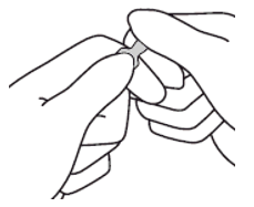 Hold tommelen på prikken og brekk av ampulletoppen, mens den andre delen av ampullen holdes godt i hånden.