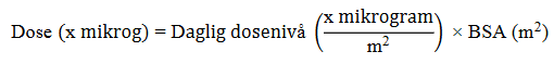 Beregn pasientens BSA (f.eks. ved bruk av Mosteller-formelen) før behandling: