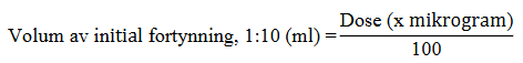 Beregn volumet av Teizeild-oppløsningen (100 mikrogram/ml) fra trinn 1 som skal fortynnes videre i trinn 2.