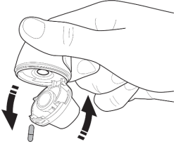 Rengjør Vertical-Haler Åpne munnstykket etter bruk. Hold inhalatoren opp-ned for å fjerne kapselen fra kapselkammeret. Rengjør munnstykket og kapselkammeret med en ren, tørr klut. Alternativt kan en myk, ren børste brukes til å fjerne pulverrester i kapselkammeret. Lukk munnstykket og sett på beskyttelseshetten. Dette vil holde pulverinhalatoren ren og tørr. Ved behov skal utsiden av munnstykket rengjøres med en fuktig klut. |