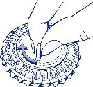 Neste dag dreies den gjennomsiktige ytre skiven med klokken en plass som vist med pilen. Vipp den neste tabletten ut. Husk å ta kun 1 tablett en gang daglig.