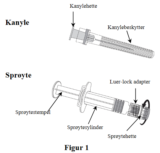1. Skru løs sprøytehetten ved å skru den mot klokken (som vist i figur 1).