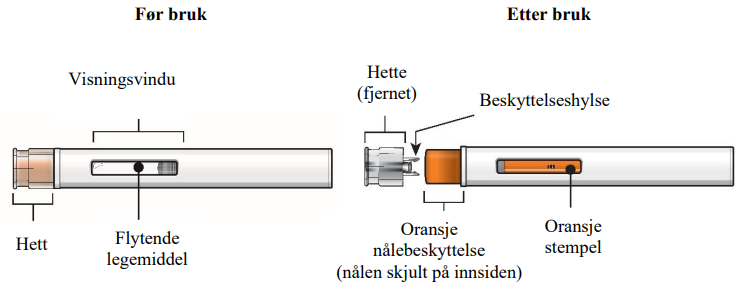 Fjern ikke hetten før rett før du skal sette injeksjonen.