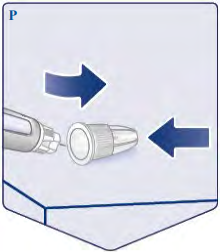 Du kan stikke deg på nålen. Fjern alltid nålen umiddelbart etter hver injeksjon for å forhindre tette nåler, urenheter, infeksjon og unøyaktig dosering. Oppbevar aldri pennen med påsatt nål.