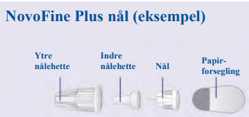 1 ferdigfylt penn og 4 NovoFine Plus engangsnåler.