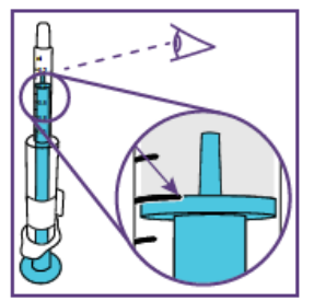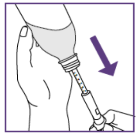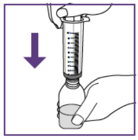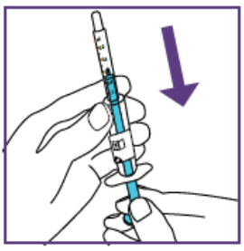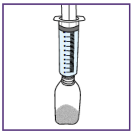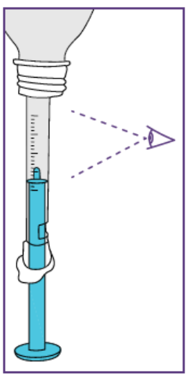 Etter å ha satt dosen kan den blå sprøyten brukes til alle administreringer fra flasken med suspensjon som ble klargjort i trinn 1.