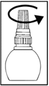 Plasser tuppen av flasken nær, men uten å berøre øyet.