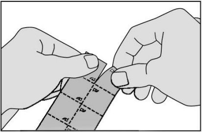 3. Ikke press legemidlet gjennom folien. Det kan skades fordi det lett går i oppløsning. Brett det merkede hjørnet av folien og trekk den av.
