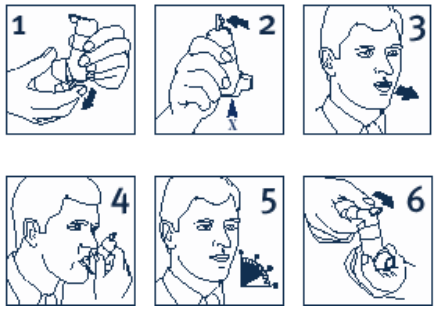 Laderen må skyves tilbake etter hver dose. Hvis legen har forskrevet mer enn en dose, gjenta pkt.2-6. Etter bruk settes beskyttelseshetten tilbake på munnstykket. Skyll munnen med vann og spytt ut etter avsluttet inhalasjon.