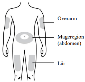 Bruk kun de følgende injeksjonsstedene: