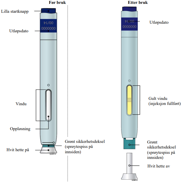 For å unngå ubehag på injeksjonsstedet, la pennen(e) ligge i romtemperatur i minst 30 minutter før injeksjon.