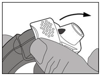 Husk: Du må bare flytte den hvite delen av munnstykket når du er klar til å inhalere en dose av legemidlet. Dersom du klargjør en dose uten å inhalere vil dosen gå tapt.