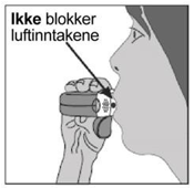 Husk: Du må bare flytte den hvite delen av munnstykket når du er klar til å inhalere en dose av legemidlet. Dersom du klargjør en dose uten å inhalere vil dosen gå tapt.