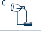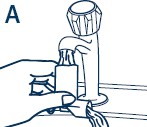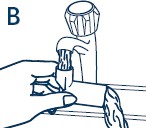 Snu plashylsteret og la det varme vannet renne gjennom hylsteret som vist på bilde B. Dette er meget viktig, da åpningen hvor legemidlet kommer ut, ellers kan bli tett.
