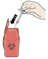 Når du er klar til å injisere, dra nålehetten rett av og vekk fra kroppen din.