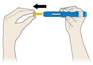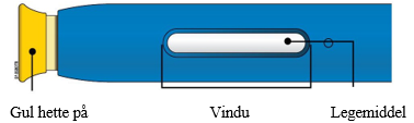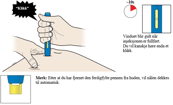 Viktig: Hvis vinduet ikke har blitt gult eller det ser ut som om legemidlet fremdeles injiseres idet du fjerner den ferdigfylte pennen, betyr det at du ikke har fått en hel dose. Kontakt lege øyeblikkelig.