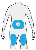 Viktig: Unngå områder med arr, strekkmerker eller der huden er øm, har blåmerker, er rød eller hard.