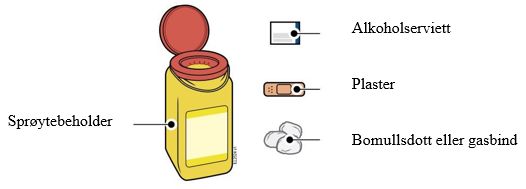 Kast den brukte ferdigfylte sprøyten og nålehetten i sprøytebeholderen.