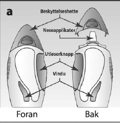 Nesesprayen leveres i en brungul glassflaske i en plastikkbeholder - se bilde a. Den vil inneholde enten 30, 60 eller 120 doser, avhengig av pakningsstørrelsen som er blitt forskrevet til deg.
