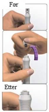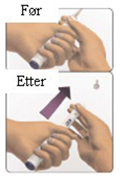 1. Fjern hetten som viser om pennen har vært åpnet Kontroller at hetten er hel og ikke har vært åpnet. Ikke bruk pennen hvis det ser ut som den har vært åpnet.