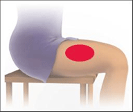 Avonex skal injiseres i en muskel. Det beste området er øverste del av muskelen på yttersiden av låret, som vist i figuren ovenfor. Injeksjon i setemuskelen anbefales ikke.