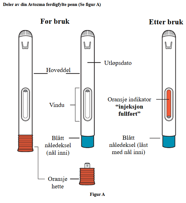 Ikke fjern hetten fra den ferdigfylte pennen før du er klar til å injisere Avtozma.
