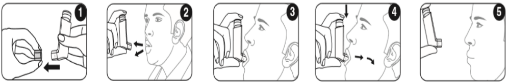 Vend munnstykket bort fra deg og trykk beholderen hardt ned for å frigjøre en inhalasjon.