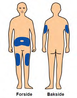 Se «Valg av injeksjonssted» for veiledning for valg av injeksjonssted.