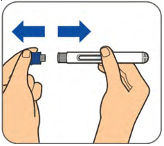 Ikke vri eller bøy kanylehetten idet du fjerner den, da dette kan skade nålen. Ikke sett kanylehetten på igjen.