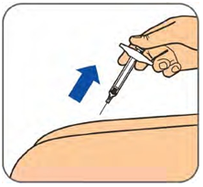 Når sprøyten er tom, fjernes kanylen fra huden i samme vinkel som ved innsetting.