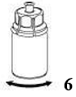 6. Roter forsiktig pulverhetteglasset med den gjennomsiktige adapterdelen festet, inntil alt pulveret er helt oppløst. Må ikke rystes.