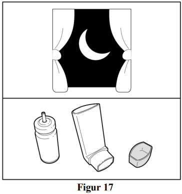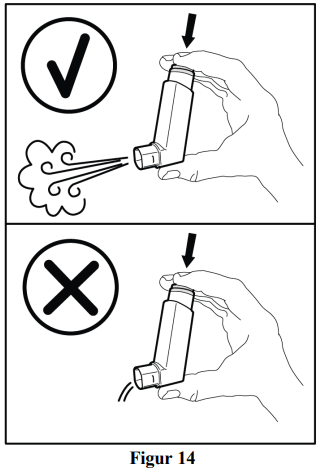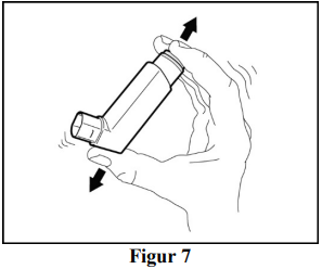Hold inhalatoren loddrett, bort fra ansiktet og rist den godt (se figur 4).