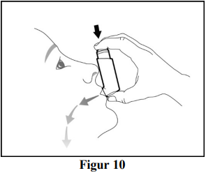 Gjenta klargjøringstrinnene 3 ganger til (se figur 4 og figur 5). Rist inhalatoren godt før hver klargjøringsdose.