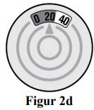 Fargen i doseindikatorvinduet endres til rød, som vist i det skraverte området, når det bare er 20 doser legemiddel igjen i inhalatoren (se figur 2d).