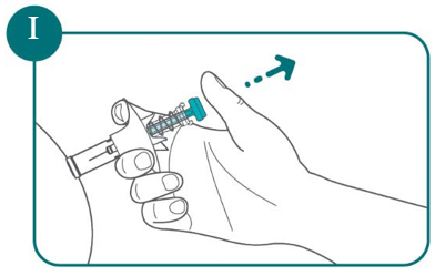 Ikke hold stempelstangen mens du tar hetten av. Hvis du ved et uhell fjerner stempelstangen, skal du kaste den ferdigfylte sprøyten i avfallsbeholderen for skarpe gjenstander og ta frem en ny ferdigfylt sprøyte.